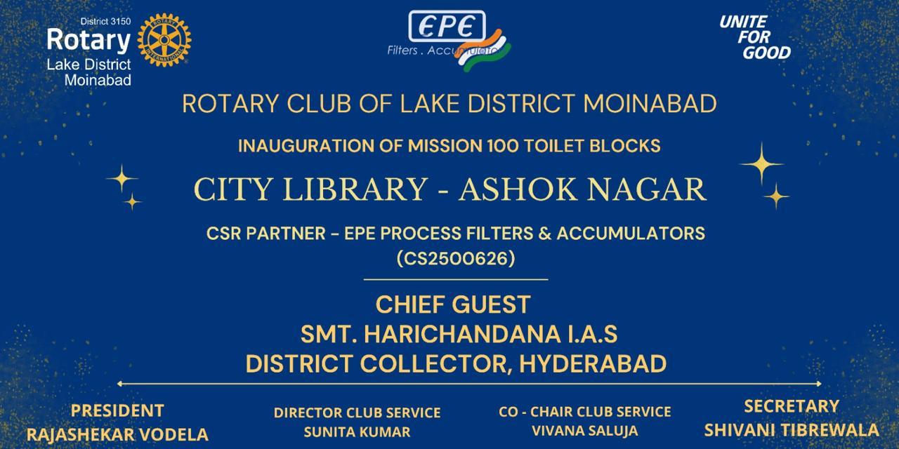 Under its flagship Mission 100 Toilet Block Initiative, the Rotary Club of Lake District (RCLD) successfully inaugurated the restoration of the gents’ and ladies’ toilet blocks at the City Library, Ashok Nagar.